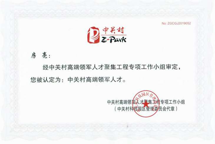 这一次房亮博士获得2019年度中关村高端领军人才的殊荣,不仅是对房亮博士创业领军能力的认可,也是对国科开云官方版网站登录入口-开云online(中国)未来发展的认可。